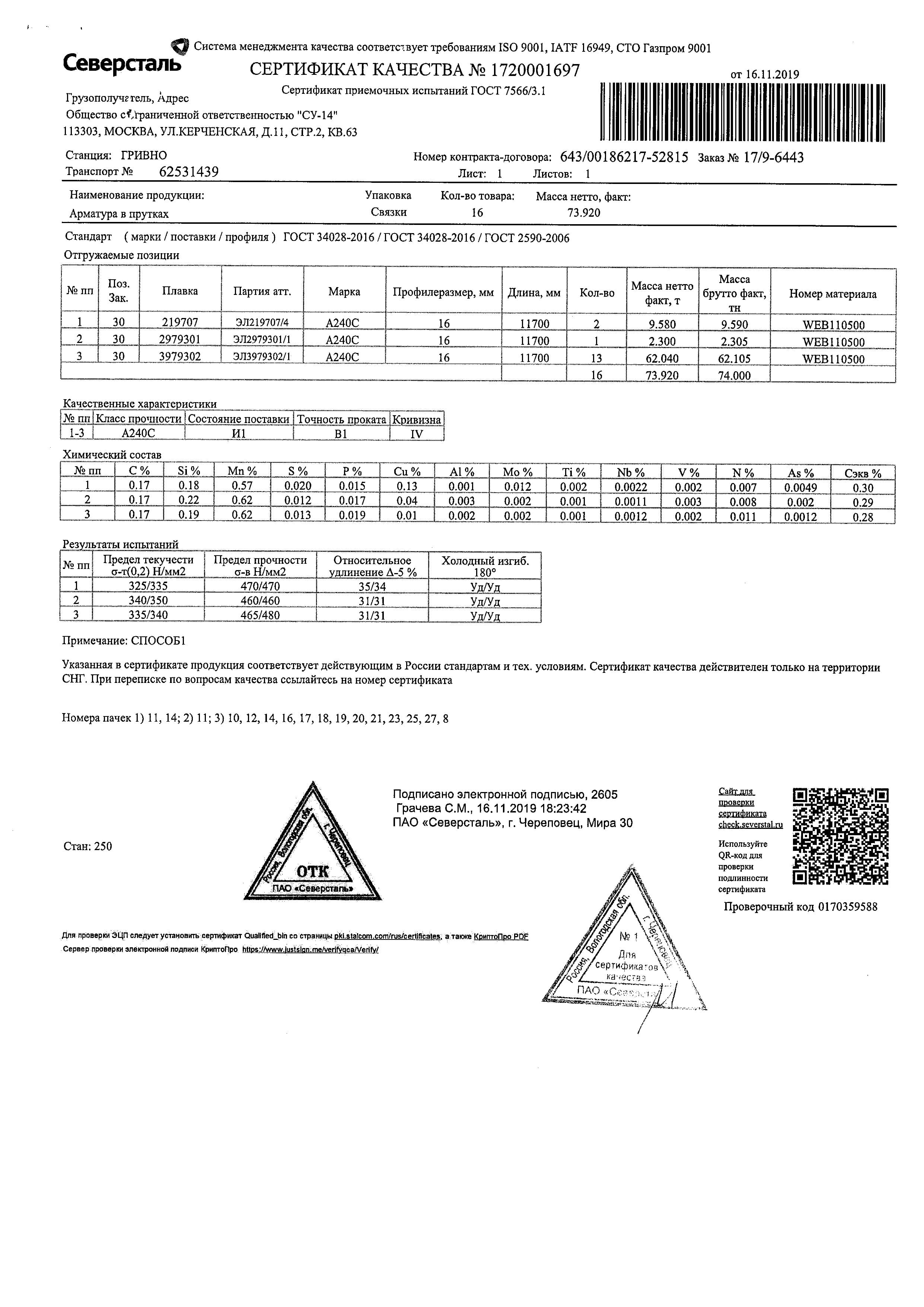 С каждой товарной позицией мы предоставляем все сертификаты и паспорта качества, а также товарно-транспортную накладную.