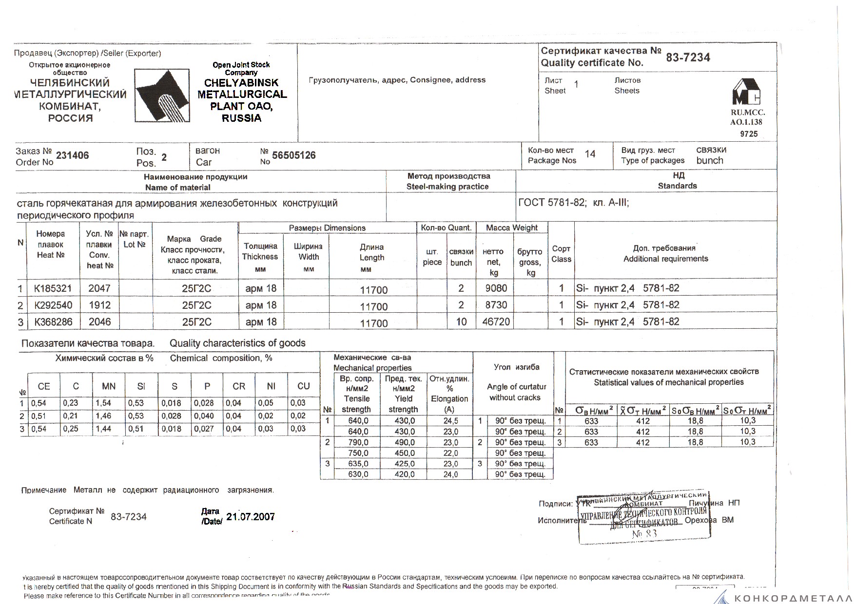 С каждой товарной позицией мы предоставляем все сертификаты и паспорта качества, а также товарно-транспортную накладную.