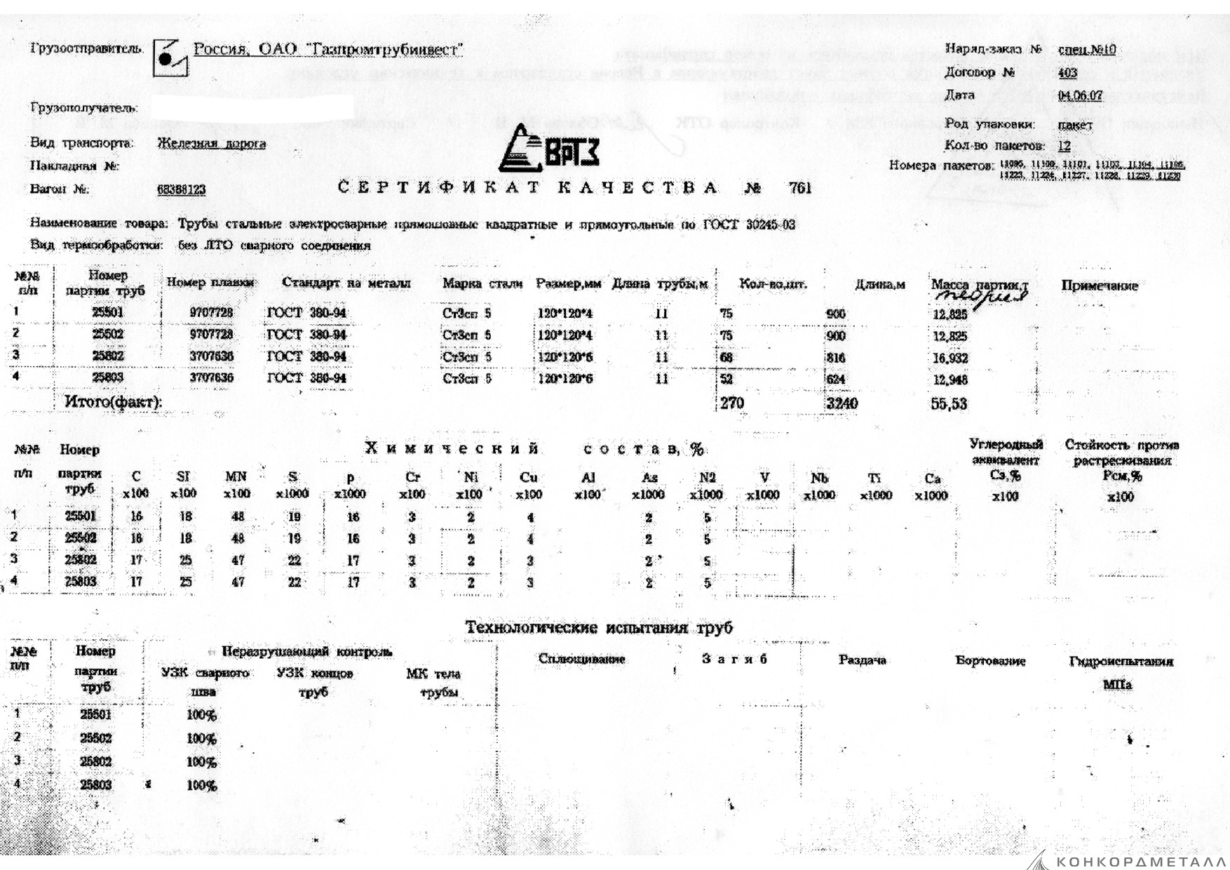 С каждой товарной позицией мы предоставляем все сертификаты и паспорта качества, а также товарно-транспортную накладную.