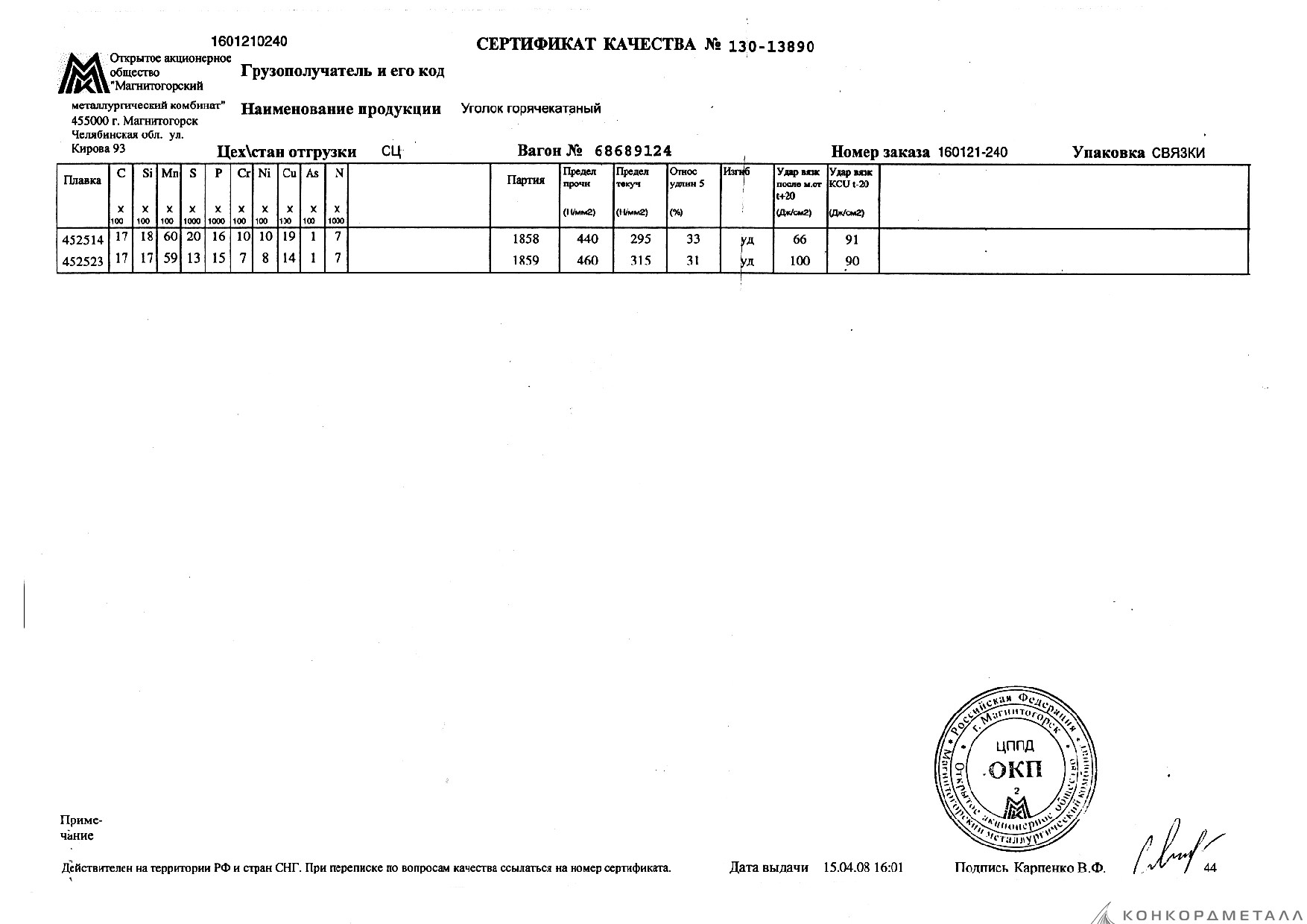 С каждой товарной позицией мы предоставляем все сертификаты и паспорта качества, а также товарно-транспортную накладную.